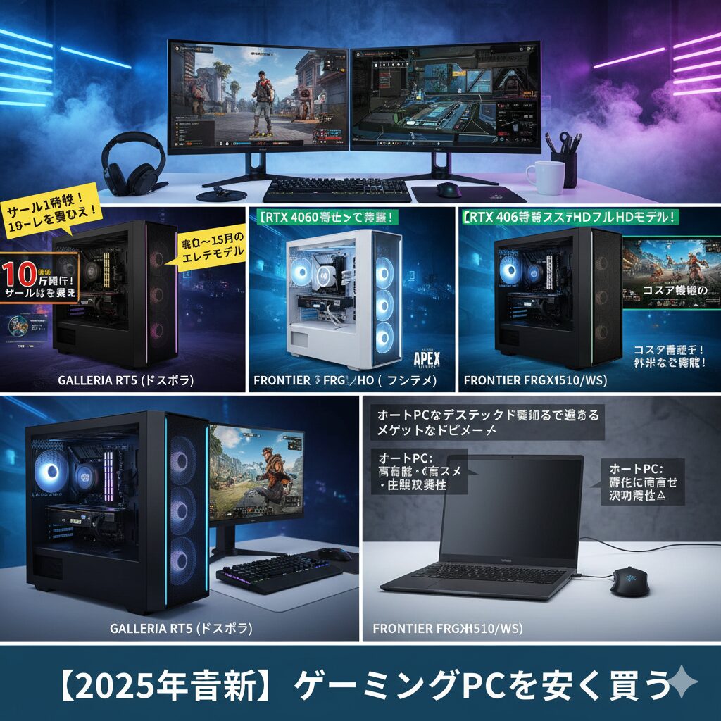- **ドスパラ (GALLERIA)**:特定のモデルが「特価」になることが多く、**GALLERIA RT5**のようなエントリーモデルが狙い目です。